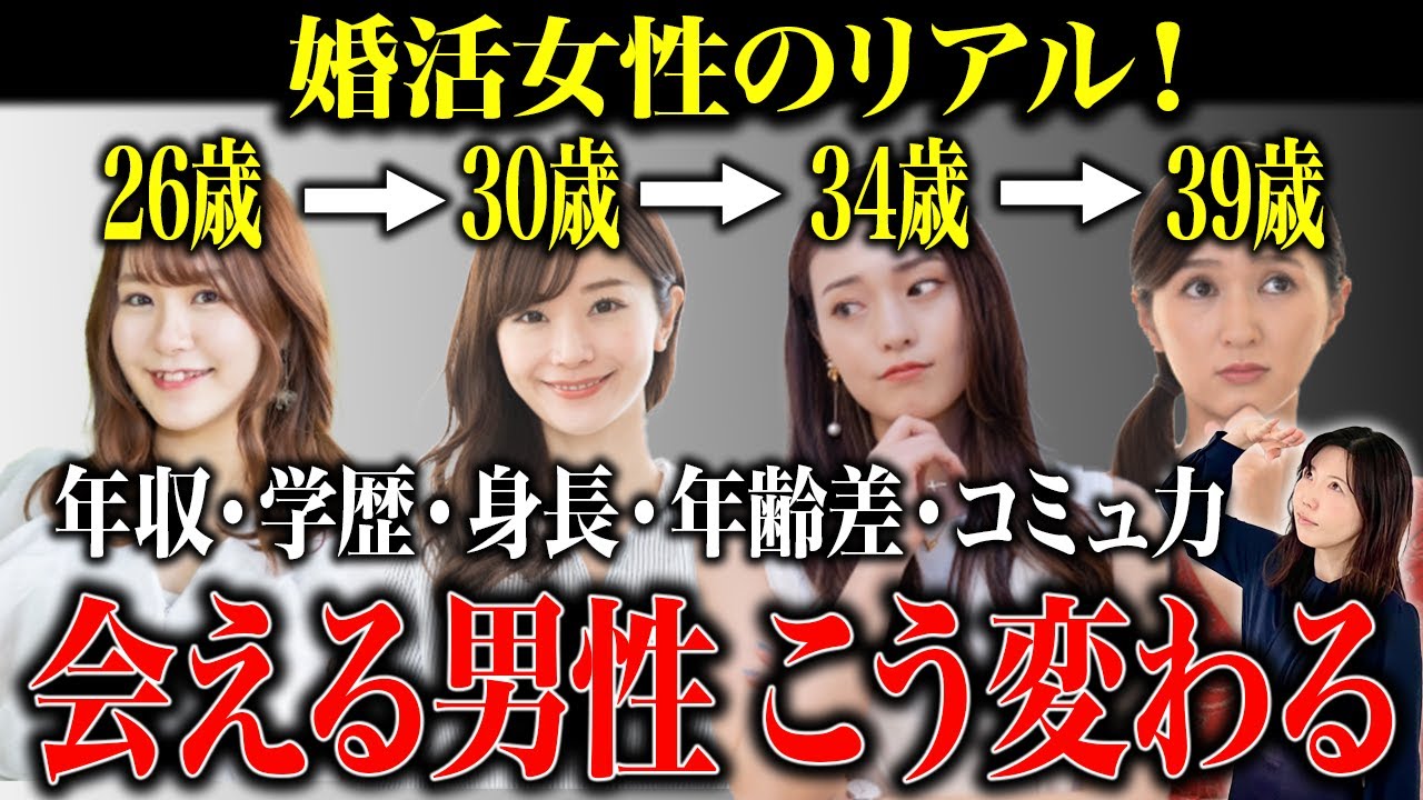 【結婚相談所の現実】婚活女性26歳・30歳・34歳・39歳 会える男性こんな風に変わっていく・・年齢別に会える男性のプロフィールを解説