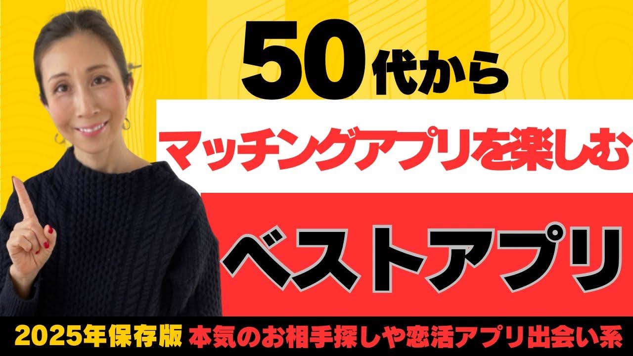 【50代向け】50代が出会えるマッチングアプリおすすめ3選/マッチングアプリで結婚【中高年の恋活と婚活】 出会いアプリ X Facebook はてブ Pocket LINE コピー 2025.10.22 こんにちは ブランです。 いつもご視聴ありがとうございます。 50代からの婚活で使いやすいマッチングアプリを 紹介しました。 後半は実戦でのコツもお伝えします。 ぜひ最後までご視聴ください。 #50代婚活 #40代婚活 #マッチングアプリ #マッチングアプリ攻略 BGM: ・Epoch 作曲 RYU ITO @RYUITOMUSIC